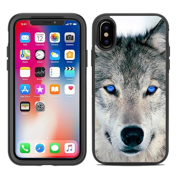 Protective Designer Vinyl Skin Decals Stickers For Otterbox Symmetry Iphone Xs Iphone X Case Blue Eyed Wolf Face Wolves Design Patterns Only Skins
