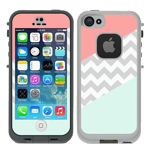 Protective Designer Vinyl Skin Decals Stickers For Lifeproof Iphone 5 5s Se Fre Case Coral Mint Grey Chevron Design Patterns Only Skins And Not