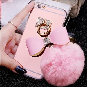 Iphone 7 Case Lu2000 Fluff Pom Pom Ball Keychain Pc Tpu Soft Plastic Phone Case Rose Gold Back Cover With Mirror For Apple Iphone 7 4 7 Inches