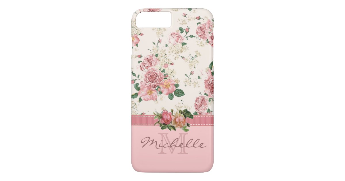 Elegant Vintage Pink Floral Rose Monogram Name Case Mate Iphone Case Zazzle Com