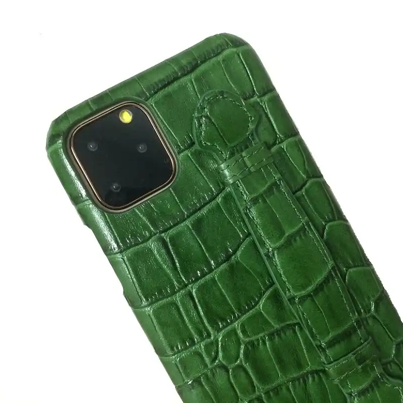 Genuine Leather Hand Strap Holder Case For Iphone 11 Pro Max Promax Phone Cases New 2019 Luxury Crocodile Thin Hard Cover Green