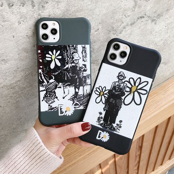 One Piece Luxury Imd Phone Case For Iphone 7 8plus Xs Xr 11promax Fashion Painting Daisies Designer Phone Case Back Cover Cell Phone Cases Covers Cell