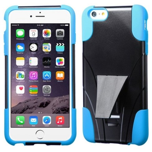 Asmyna For Apple Iphone 6 Plus 6s Plus Black Blue Hard Silicone Hybrid Case W Stand