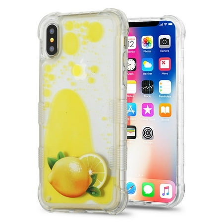 Insten Oil Aqualava Lemon Pc Tpu Rubber Case Cover For Apple Iphone X Yellow Bundle With Mfi Certified Lightning Cable