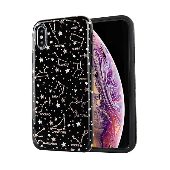 Zodiac Iphone X Iphone Xs Case Rose Gold Constellation Girls And Women Glittering Back Cover Hard Pc And Back Soft Tpu Shockproof Lining Hybrid Case