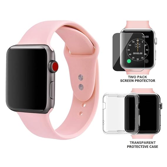 Palestrapro Iphone Watch Band 38mm Compatible With Apple Watch Series 3 And Series 2 Silicone Pink Sport Strap With 2 Pack Tempered Glass Screen
